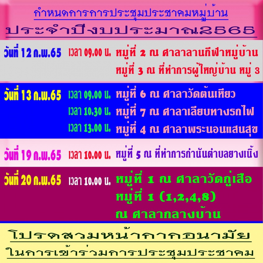 กำหนดการประชาคมหมู่บ้านประจำปีงบประมาณ 2565
