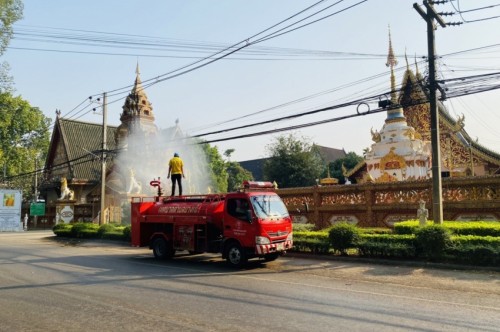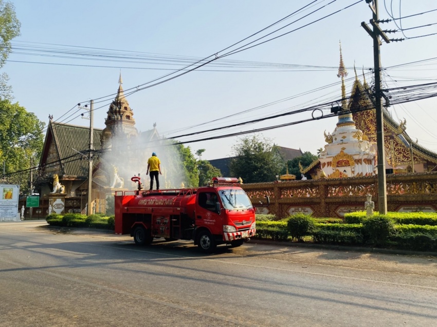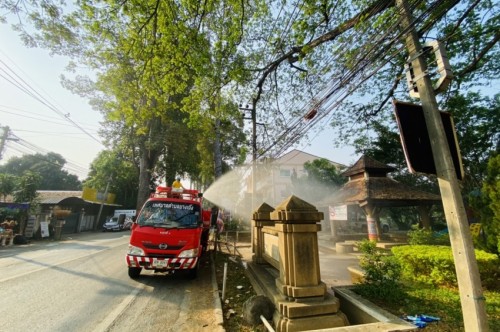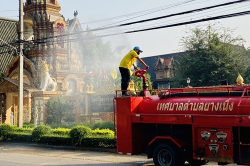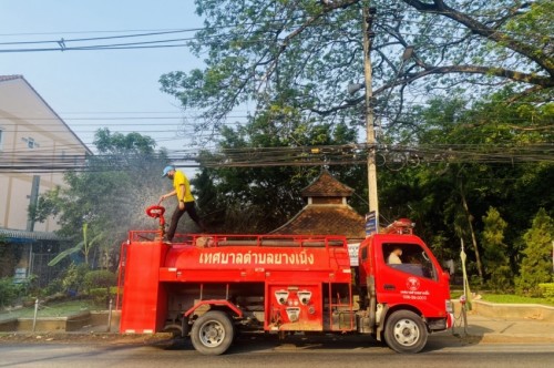 กิจกรรมฉีดพ่นละอองน้ำสร้างความชุ่มชื้นในพื้นที่เพื่อแก้ไขปัญหาฝุ่นละอองขนาดเล็ก PM 2.5