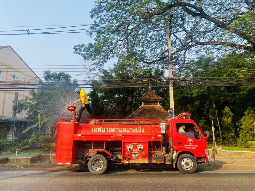เทศบาลตําบลยางเนิ้ง ได้ดำเนินการนำรถดับเพลิงน้ำฉีดพ่นละอองน้ำภายในเขตเทศบาลตำบลยางเนิ้ง โดยการจัดกิจกรรมฉีดพ่นละอองน้ำสร้างความชุ่มชื้นในพื้นที่เพื่อแก้ไขปัญหาฝุ่นละอองขนาดเล็ก PM 2.5 พร้อมกันทั้งจังหวัดเชียงใหม่ (Kick Off) โดยเจ้าหน้างานป้องกันและบรรเทาสาธารณภัยเทศบาลตำบลยางเจ้าหน้าที่อาสาสมัครป้องกันภัยฝ่ายพลเรือน (อปพร.) พร้อมทั้งจิตอาสาภัยพิบัติเข้าร่วมกิจกรรมดังกล่าว ซึ่งเป็นการ (Kick Off) จัดพร้อมกันทั้งจังหวัด เพื่อสร้างความตระหนักถึงปัญหาภัยจากฝุ่นละอองขนาดเล็ก PM 2.5 ตามหนังสือสั่งการของจังหวัดเชียงใหม่ เมื่อวันที่ 7 มีนาคม 2565