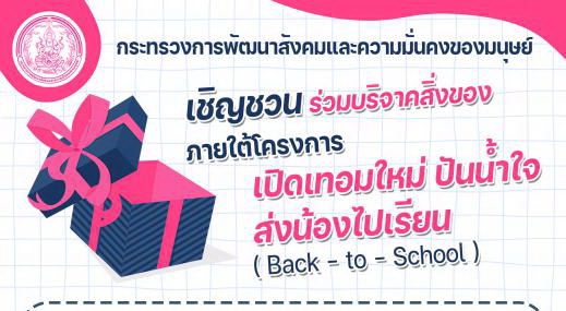 เชิญชวน ผู้สนใจเข้าร่วมกิจกรรม ภายใต้โครงการ เปิดเทอมใหม่ ปันน้ำใจ ส่งน้องไปเรียน (Back to School)