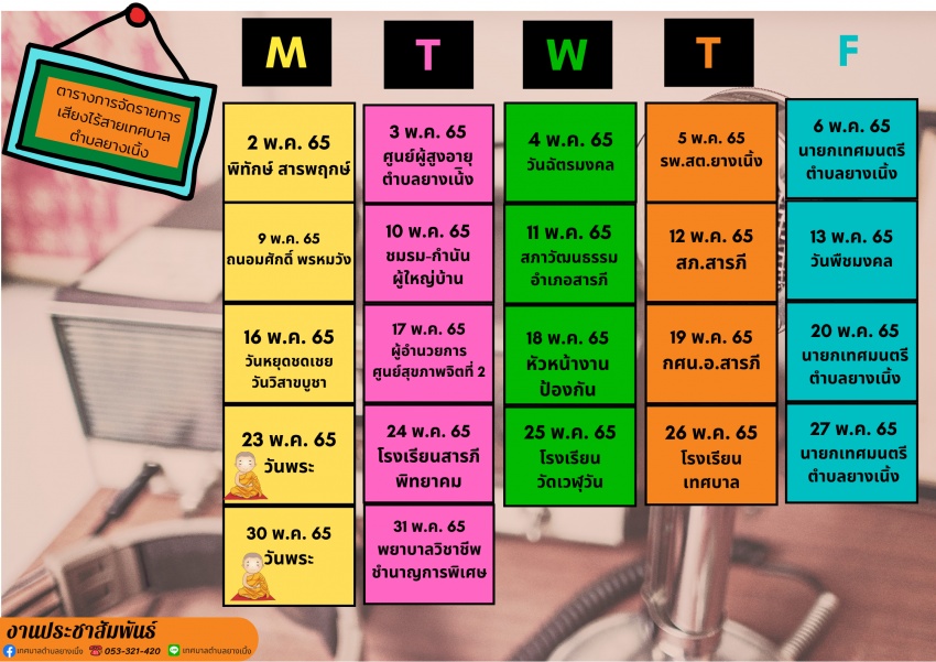 ตารางเสียงไร้สายเทศบาลตำบลยางเนิ้งประจำเดือน พฤษภาคม 2565