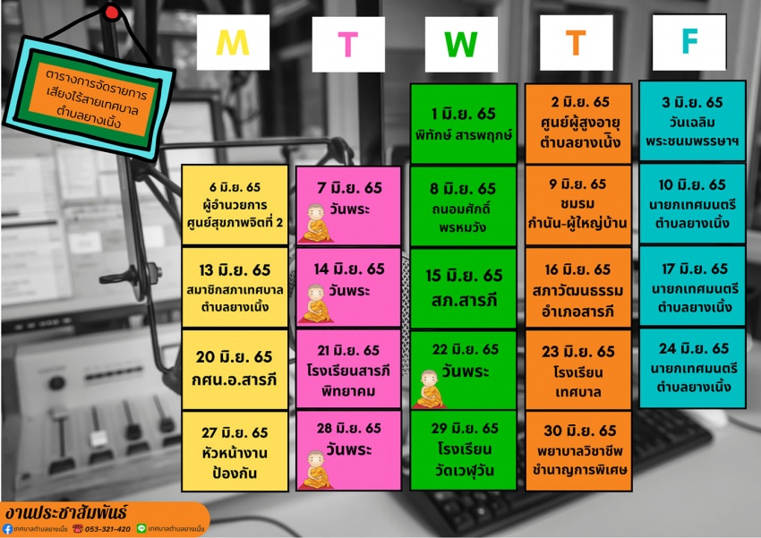 ตารางเสียงไร้สายเทศบาลตำบลยางเนิ้งประจำเดือน มิถุนายน 2565