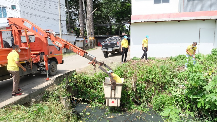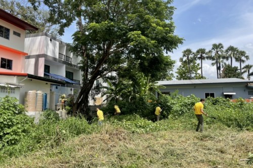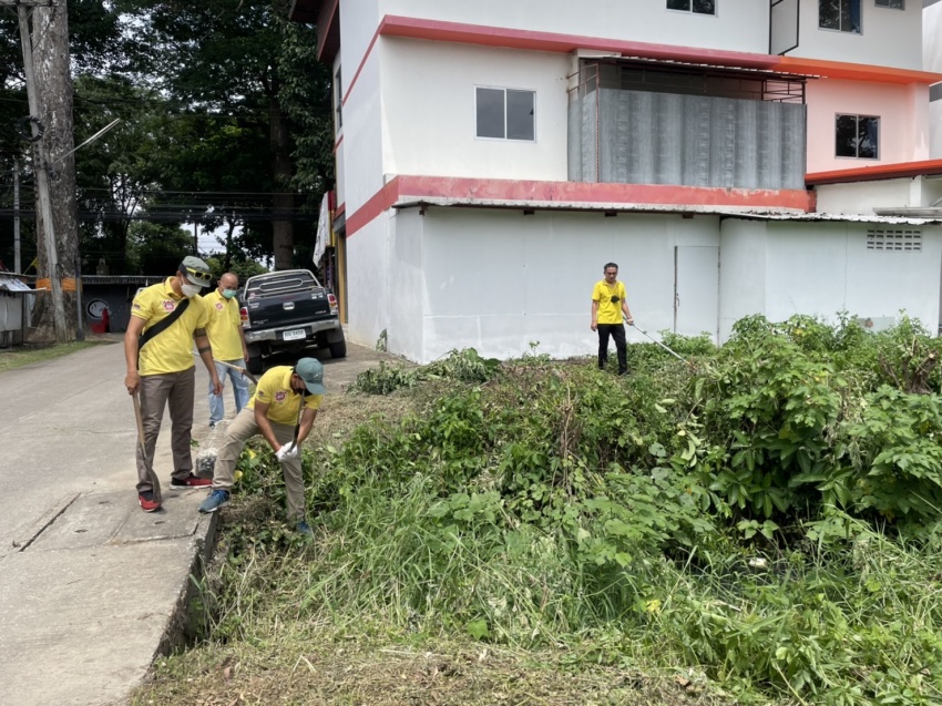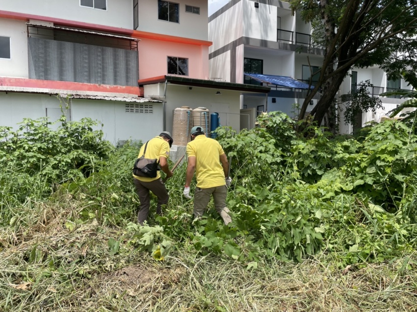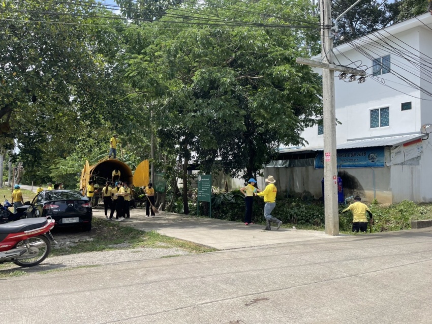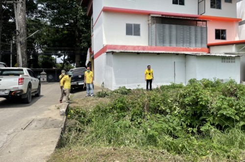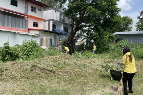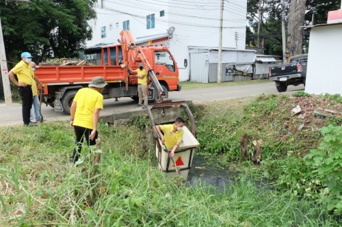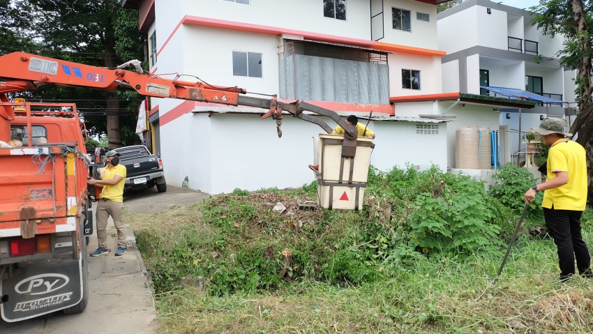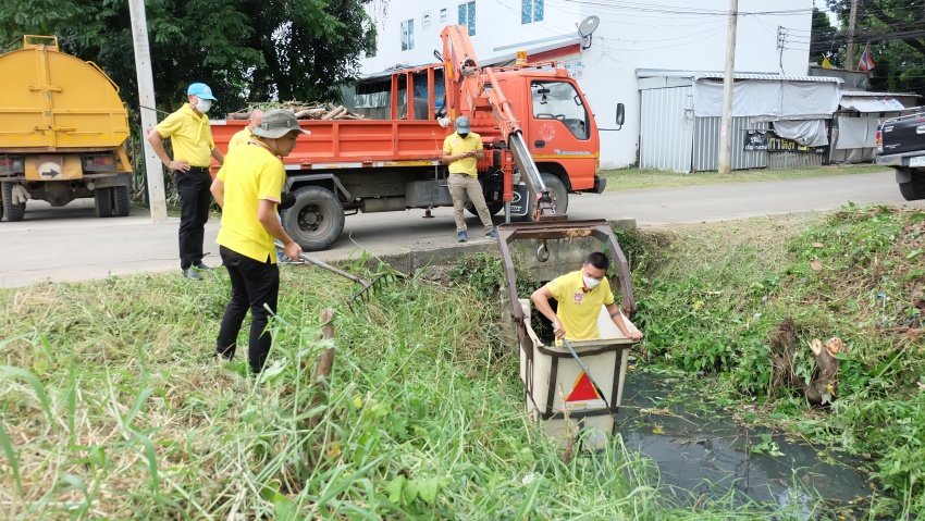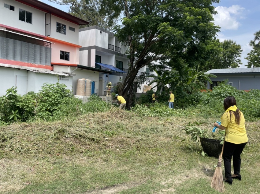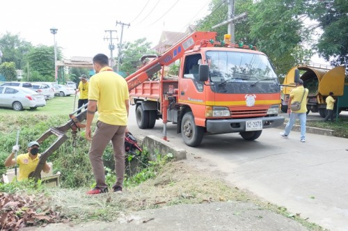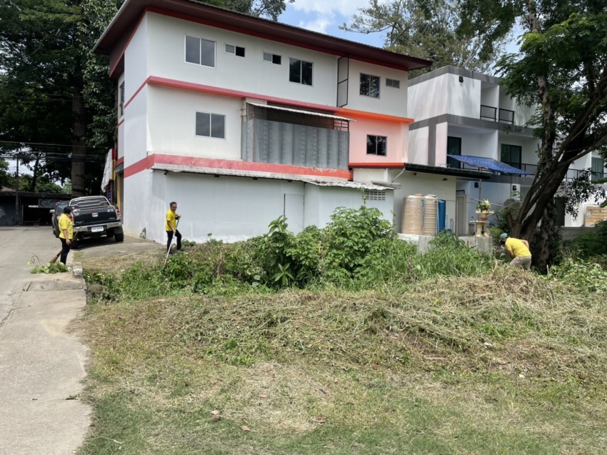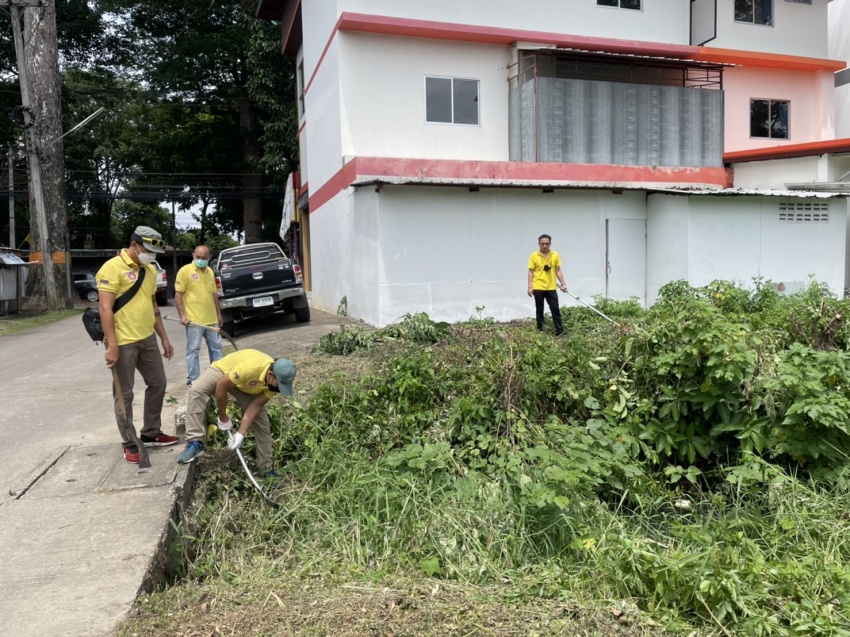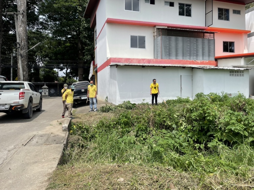 2. กองสาธารณสุข และสำนักปลัด รับผิดชอบ ตกแต่งตัดหญ้าด้านหน้า รอบๆ อาคารสำนักงานให้สวยงาม และเก็บขยะลำเหมืองด้านหน้าเทศบาล