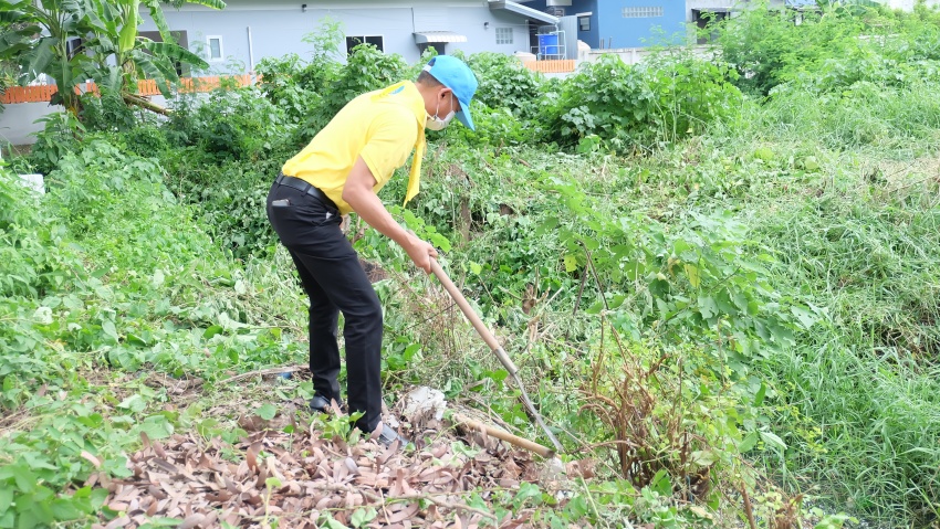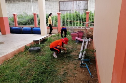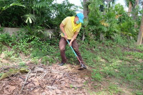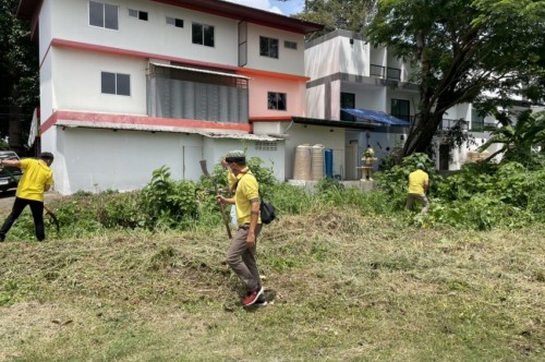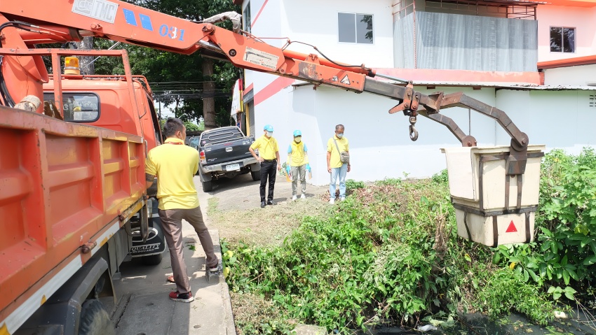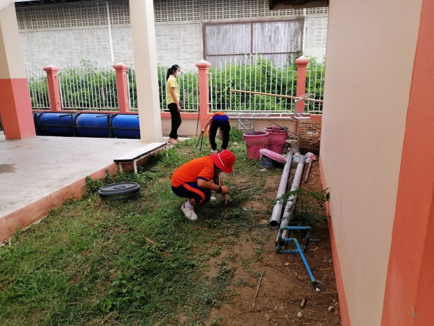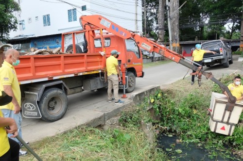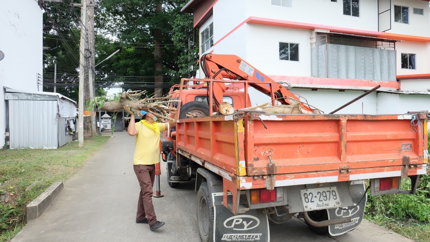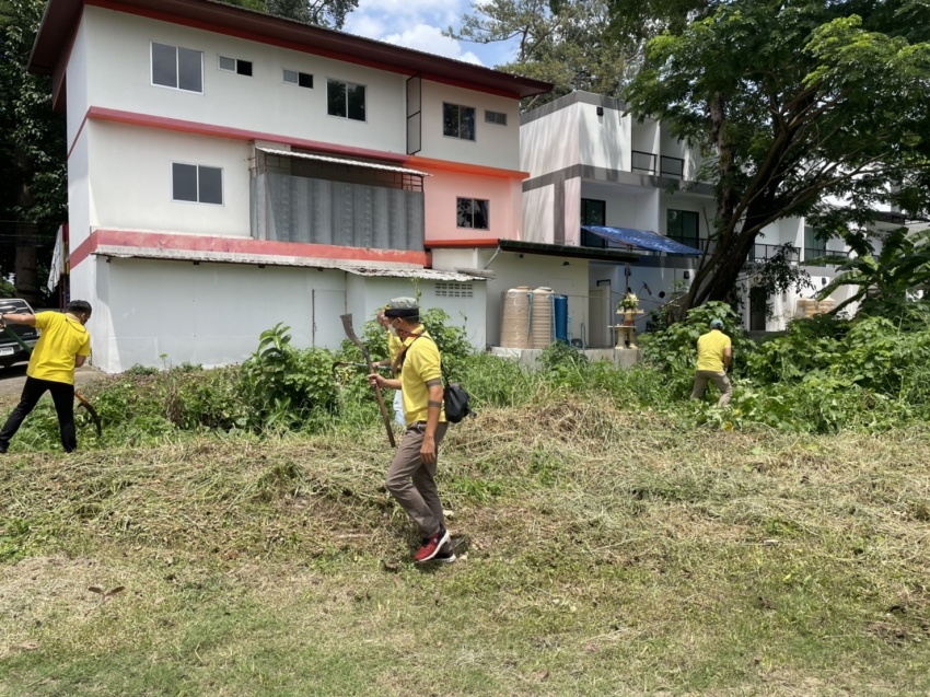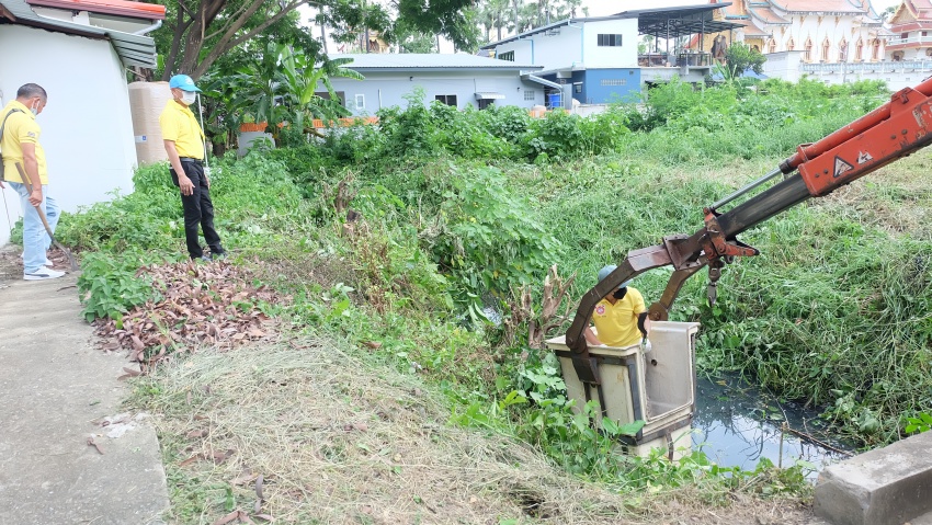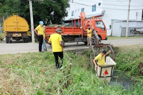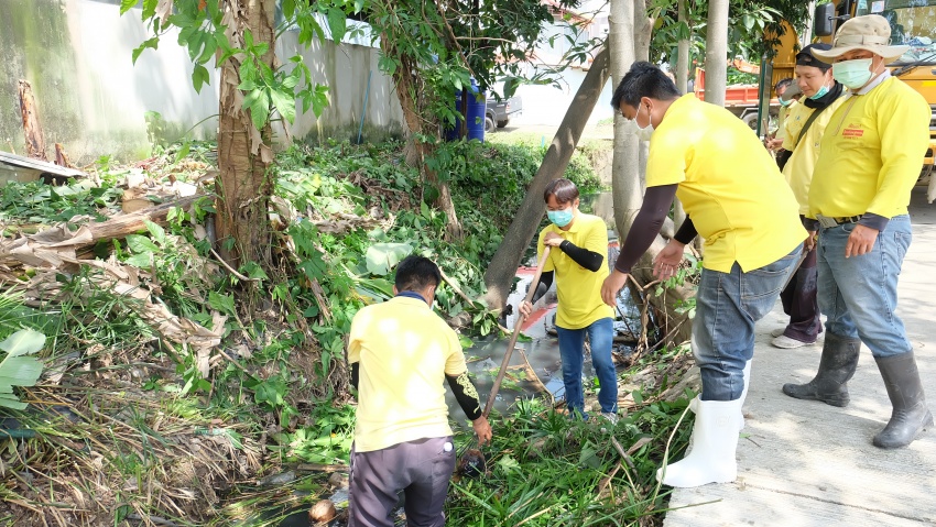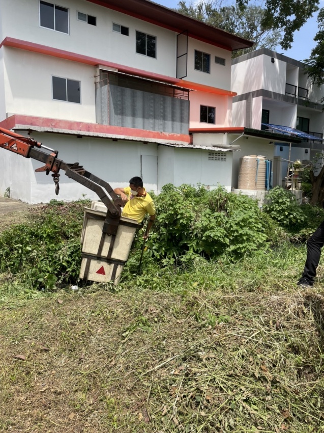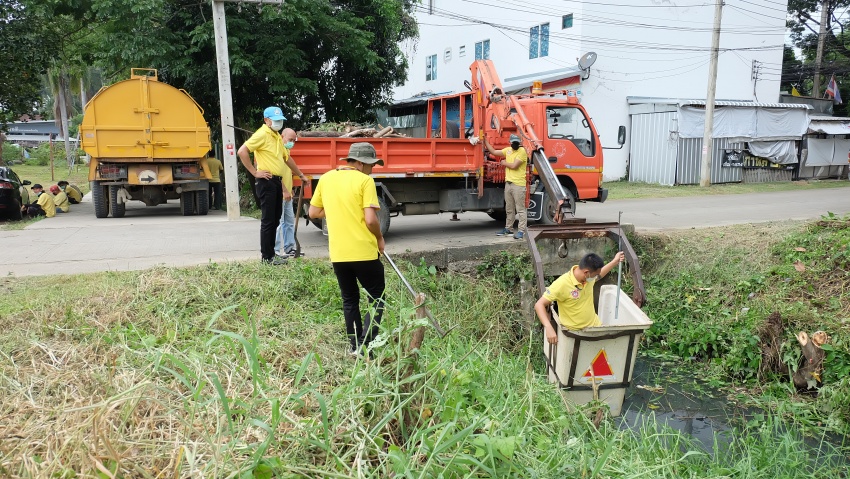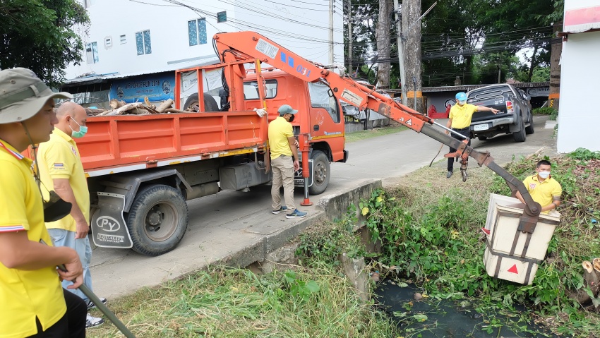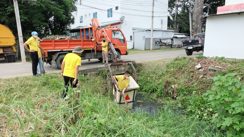 2. กองสาธารณสุข และสำนักปลัด รับผิดชอบ ตกแต่งตัดหญ้าด้านหน้า รอบๆ อาคารสำนักงานให้สวยงาม และเก็บขยะลำเหมืองด้านหน้าเทศบาล
