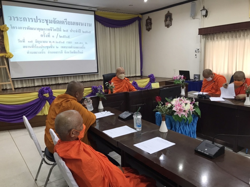 คณะสงฆ์อำเภอสารภี, หน่วยอบรมประชาชนประจำตำบลในอำเภอสารภี, ร่วมกับ ส่วนราชการอำเภอสารภี, สภาวัฒนธรรมอำเภอสารภี, องค์กรปกครองส่วนท้องถิ่นอำเภอสารภี, ชมรมกำนันผู้ใหญ่บ้านอำเภอสารภี, ศรัทธาประชาชนอำเภอสารภี, ร่วมประชุมการจัดเตรียมแผนงานโครงการพัฒนาคุณภาพชีวิตปีที่ ๒๕ ในฤดูกาลเข้าพรรษา ประจำปีพุทธศักราช ๒๕๖๕ ณ ห้องประชุมเทศบาลตำบลยางเนิ้ง