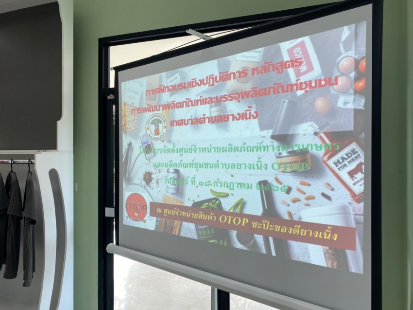 การอบรมหลักสูตร ?การพัฒนาผลิตภัณฑ์และบรรจุภัณฑ์ชุมชนเทศบาลตำบลยางเนิ้ง? ตามโครงการจัดตั้งศูนย์จำหน่ายผลิตภัณฑ์ทางการเกษตรและผลิตภัณฑ์ชุมชนเทศบาลตำบลยางเนิ้งOTOP