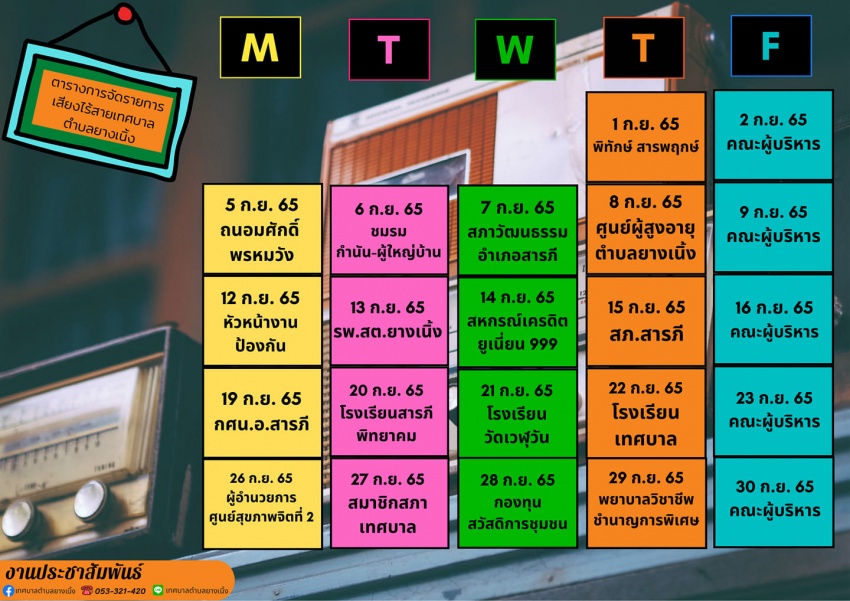 ตารางเสียงไร้สายเทศบาลตำบลยางเนิ้งประจำเดือน กันยายน 2565