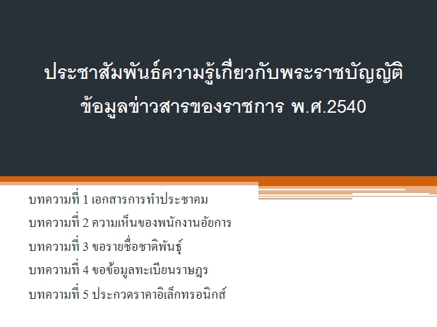 ประชาสัมพันธ์ความรู้เกี่ยวกับข้อมูลข่าวสารของราชการพ.ศ.2540