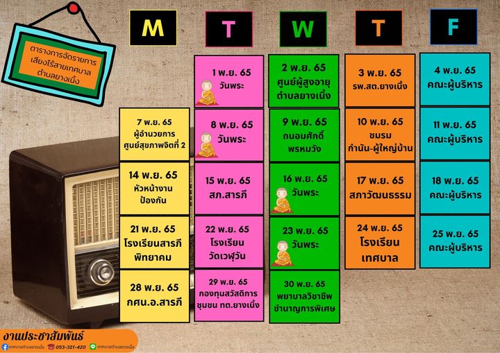 ตารางเสียงไร้สายเทศบาลตำบลยางเนิ้งประจำเดือน พฤศจิกายน 2565