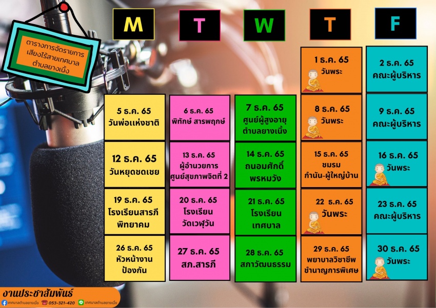 ตารางเสียงไร้สายเทศบาลตำบลยางเนิ้งประจำเดือนธันวาคม 2565