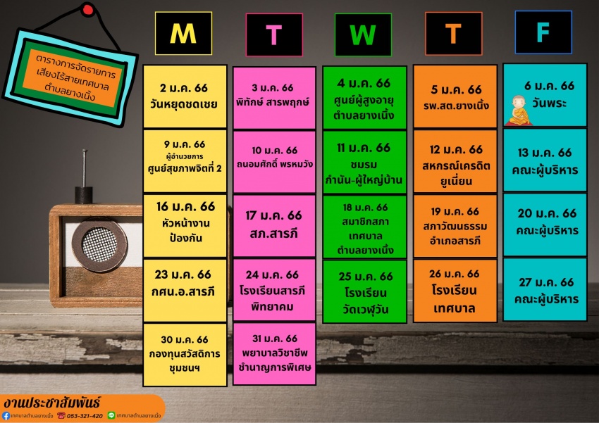 ตารางเสียงไร้สายเทศบาลตำบลยางเนิ้งประจำเดือนมกราคม 2566