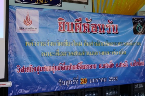 พลังงานจังหวัดเชียงใหม่นำคณะสื่อมวลชนเข้าพื้นที่เยี่ยมชมและศึกษาดูงาน ณ วิสาหกิจชุมชนกลุ่มน้ำดื่มบ้านศรีโพธาราม