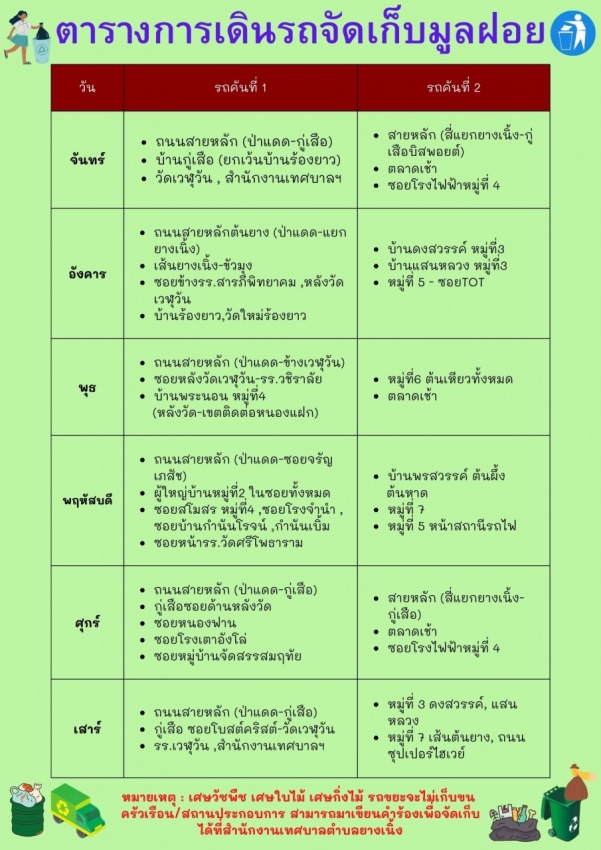 ตารางการเดินรถจัดเก็บมูลฝอย
