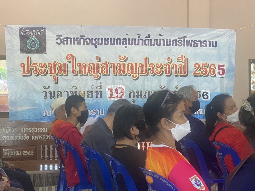 เข้าร่วมประชุมใหญ่สามัญประจำปี 2565 วิสาหกิจชุมชนกลุ่มน้ำดื่มบ้านศรีโพธาราม หมู่ที่ 5