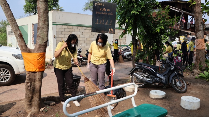โดยดำเนินกิจกรรมร่วมกันทำความสะอาดบริเวณสวนสุขภาพหมู่ที่ 6 และศูนย์จำหน่ายสินค้า OTOP ซะป๊ะของดียางเนิ้ง เพื่อเป็นการเตรียมความพร้อมในการจัดสถานที่ในการจัดงานป๋าเวณีปี๋ใหม่เมืองประจำปี 2566