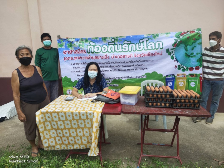 กองสาธารณสุขฯ ตั้งจุดบริการขยะแลกไข่ และการรับชำระค่าธรรมเนียมขยะมูลฝอย หมู่ที่ 5 ต.ยางเนิ้ง