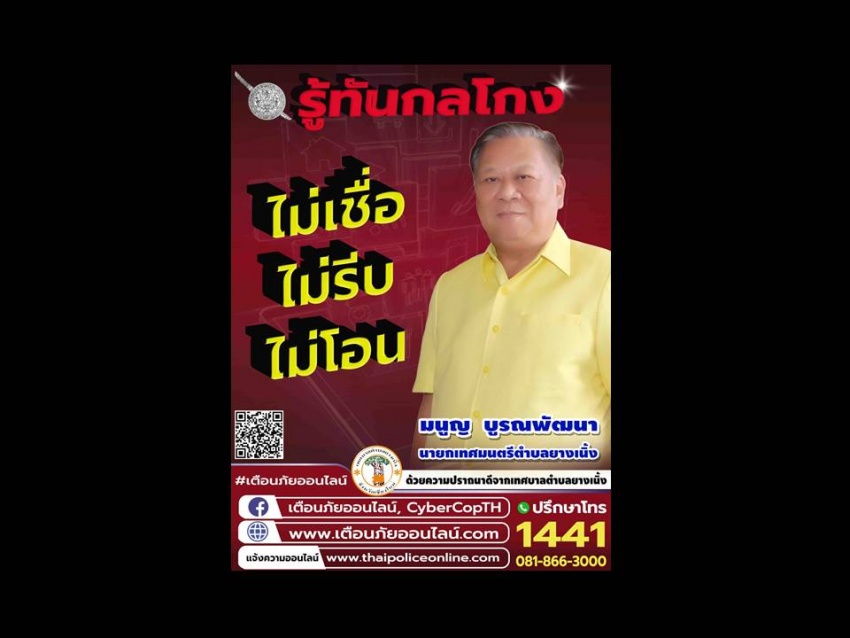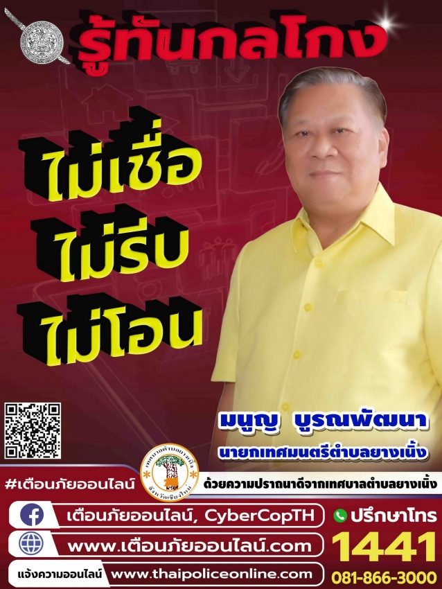 ผนึกกำลังร่วมใจต้านภัยไซเบอร์ ไม่เชื่อ ไม่รีบ ไม่โอน รู้ทันกลโกง