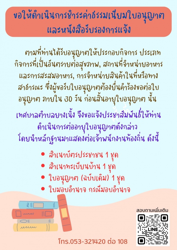 ขอให้ผู้ที่มีรายชื่อตามไฟล์แนบ ชำระค่าธรรมเนียมใบอนุญาต