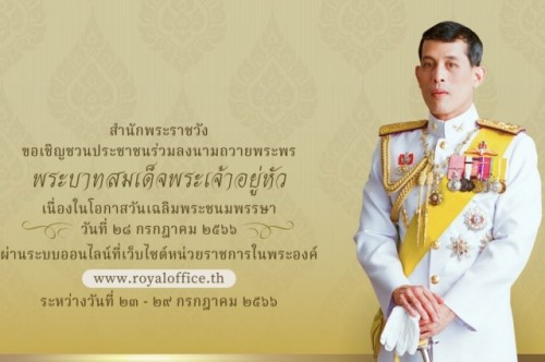 ขอเชิญชวนประชาชนร่วมลงนามถวายพระพร พระบาทสมเด็จพระเจ้าอยู่หัว เนื่องในโอกาสวันเฉลิมพระชนมพรรษา วันที่ ๒๘ กรกฎาคม ๒๕๖๖
