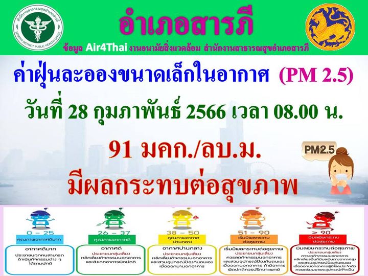 ค่าฝุ่นละอองขนาดเล็กในอากาศ (PM 2.5) เขตอำเภอสารภี