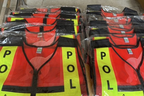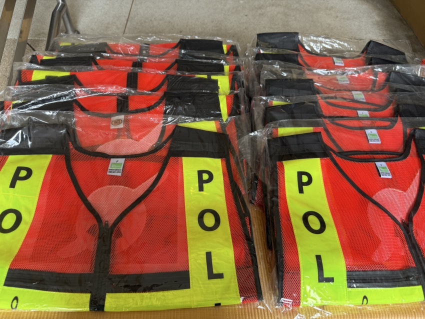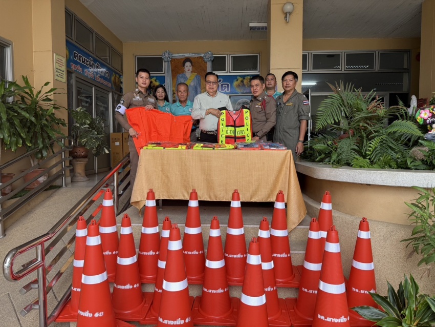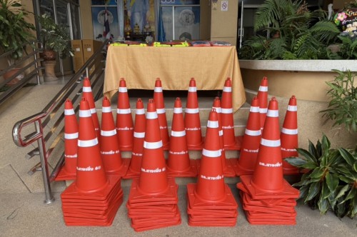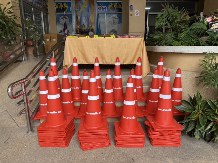ร่วมมอบอุปกรณ์เสื้อจราจรสะท้อนเเสง ชุดกันฝนสีส้ม และกรวยจราจร ให้แก่สถานีตำรวจภูธรสารภี