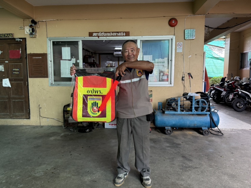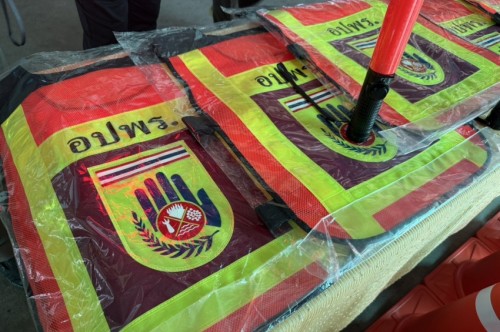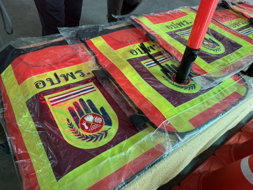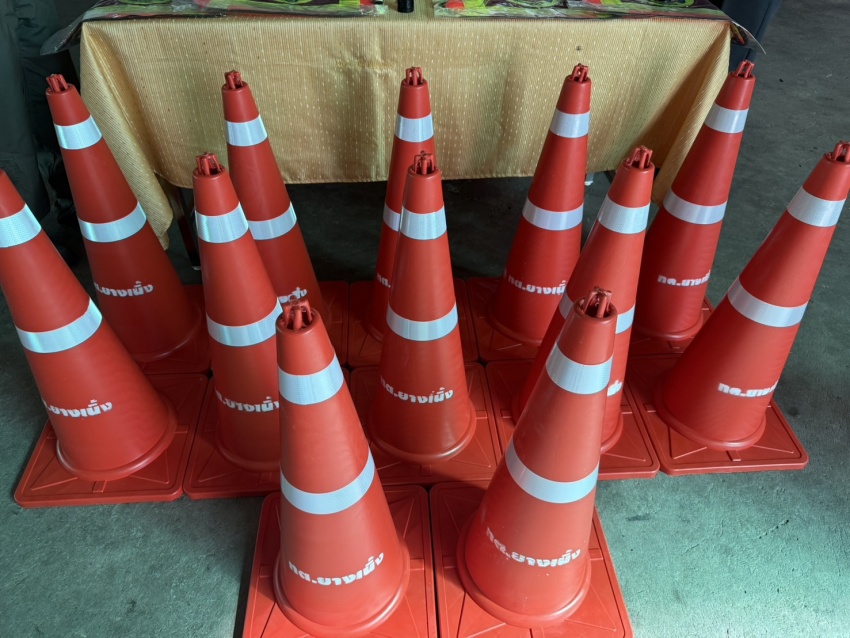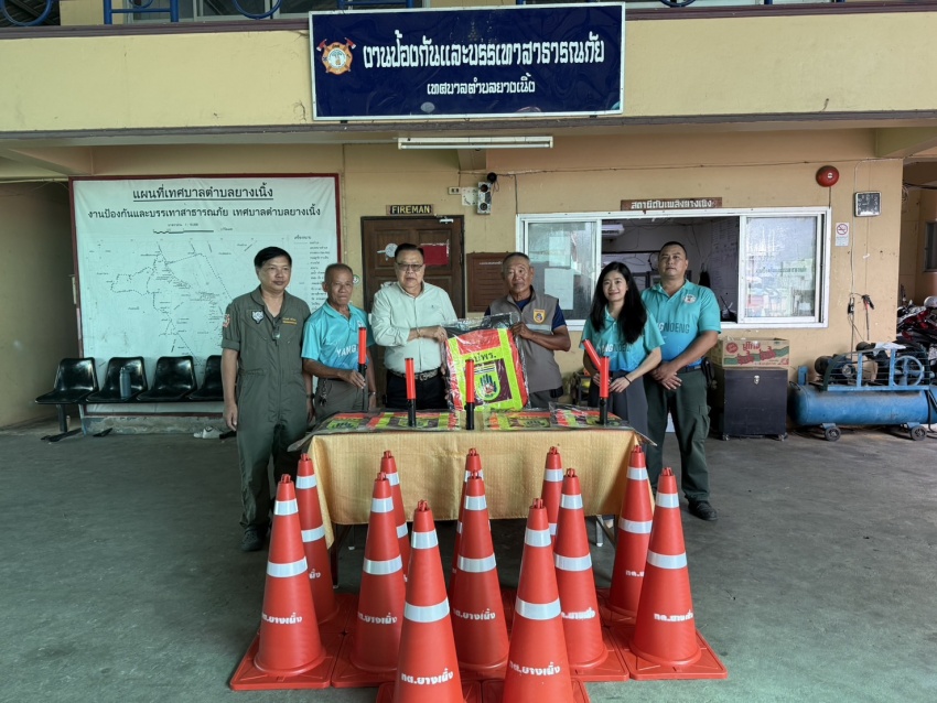 ร่วมมอบอุปกรณ์เสื้อจราจรสะท้อนเเสง กระบองไฟ และกรวยจราจร ให้เเก่ศูนย์ อปพร.ตำบลยางเนิ้ง