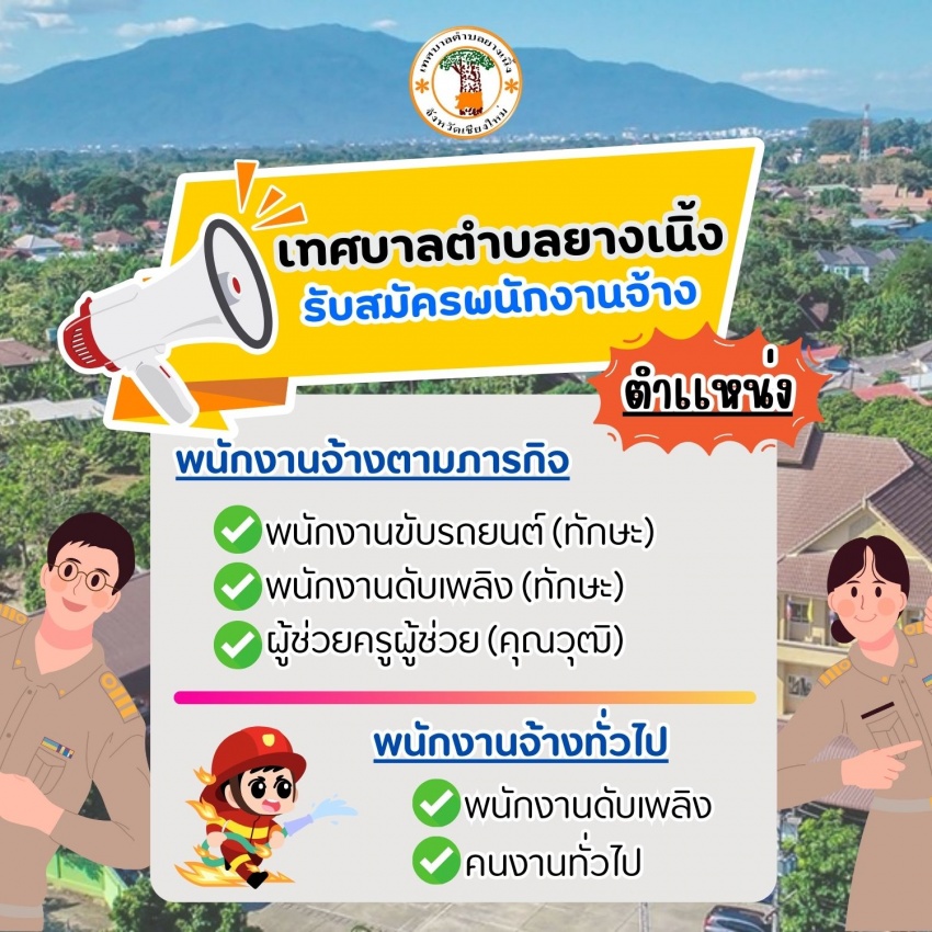ประกาศเทศบาลตำบลยางเนิ้ง เรื่องการรับสมัครบุคคลเพื่อสรรหาและเลือกสรรเป็นพนักงานจ้าง