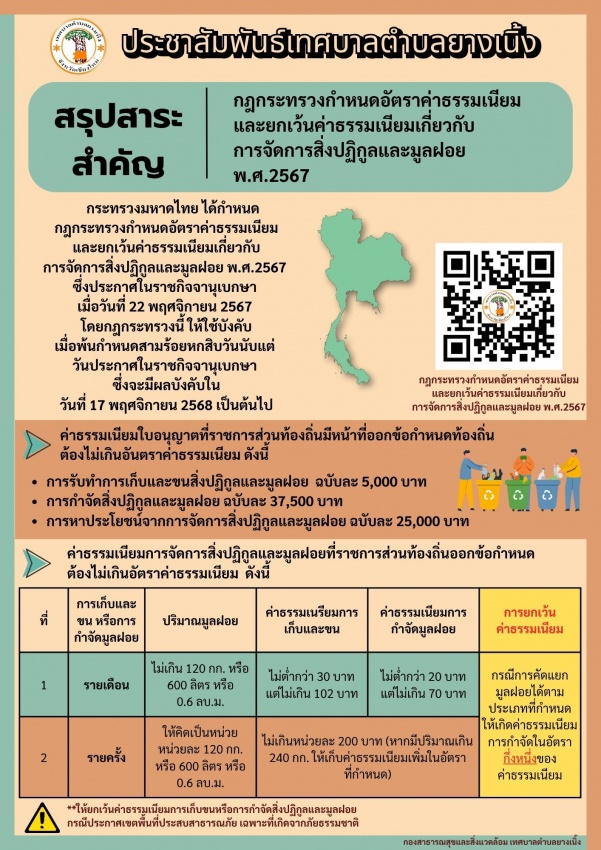 สรุปสาระสำคัญ ของกฎกระทรวงกำหนดอัตราค่าธรรมเนียมและยกเว้นค่าธรรมเนียมเกี่ยวกับการจัดการสิ่งปฏิกูลและมูลฝอย พ.ศ.2567