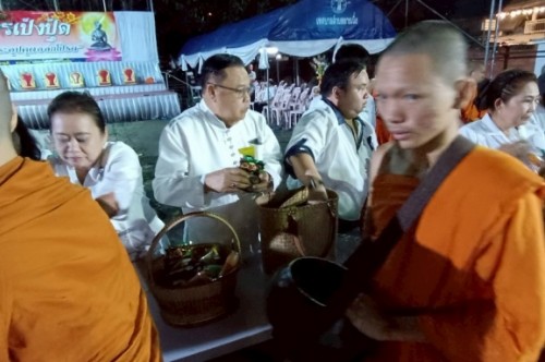 นายโชติอนันต์ แก้วกาวิล นายกเทศมนตรีตำบลยางเนิ้ง ในฐานะ ประธานสถาวัฒนธรรมอำเภอสารภี นำคณะผู้บริหาร สมาชิกสภาเทศบาล และพนักงานเทศบาลตำบลยางเนิ้ง เข้าร่วมกิจกรรมตักบาตรเป็งปุ๊ด (ประเพณีตักบาตรเที่ยงคืน)
