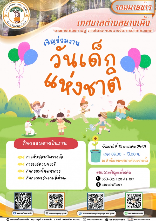 ขอเชิญเข้าร่วมกิจกรรมงานวันเด็กเเห่งชาติ ประจำปี พ.ศ. 2569