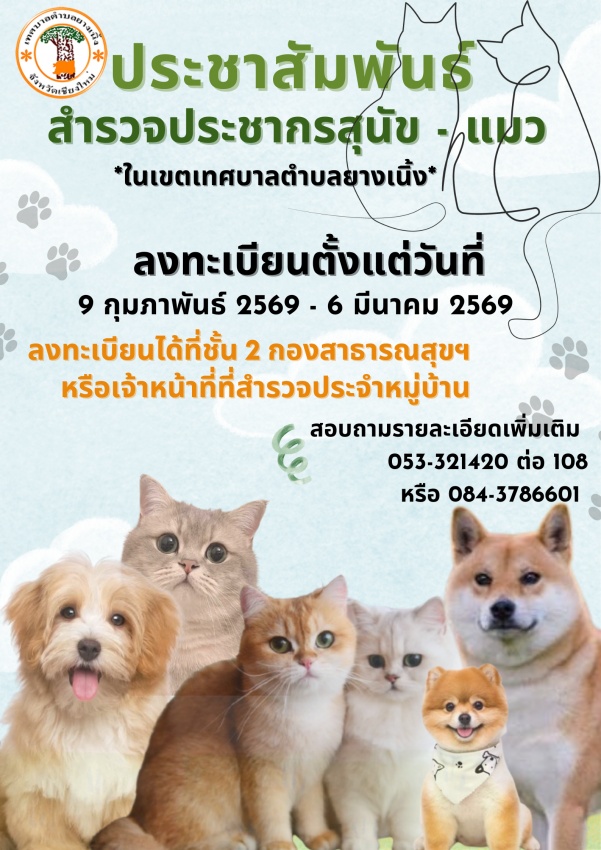 ประชาสัมพันธ์สำรวจประชากรสุนัข-แมว ประจำปี 2569