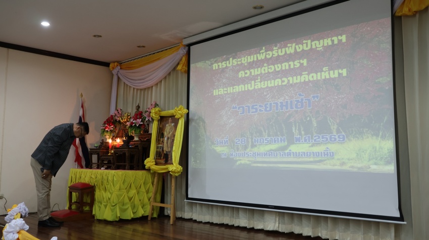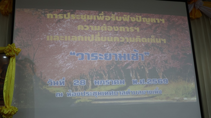 เทศบาลตำบลยางเนิ้ง ได้จัดการประชุม เพื่อรับฟังปัญหาฯลฯ ความต้องการฯลฯ และแลกเปลื่ยนความคิดเห็นฯลฯ "วาระยามเช้า" ประจำเดือน มกราคม พ.ศ. 2569 โดยนายโชติอนันต์ เเก้วกาวิล นายกเทศมนตรีตำบลยางเนิ้ง พร้อมคณะผู้บริหาร สมาชิกสภาเทศบาลฯ ปลัดเทศบาล ผูอำนวยการกองทุกกอง หัวหน้าสำนักปลัด ผู้ทรงคุณวุฒิฯ หัวหน้าส่วนราชการ พนักงานเทศบาล กำนัน-ผู้ใหญ่บ้าน ผู้นำชุมชน และคณะกรรมการหมู่บ้าน เข้าร่วมประชุม โดยก่อนเริ่มการประชุม ผู้เข้าร่วมประชุมร่วมยืนสงบนิ่งถวายความอาลัยน้อมรำลึกในพระมหากรุณาธิคุณสมเด็จพระนางเจ้าสิริกิติ์ พระบรมราชินีนาถ พระบรมราชชนนีพันปีหลวง เป็นเวลา 1 นาที และไหว้พระสวดมนต์ ณ ห้องประชุมเทศบาลตำบลยางเนิ้ง