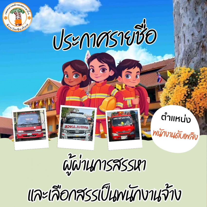 ประกาศรายชื่อผู้ผ่านการสรรหาและเลือกสรรเป็นพนักงานจ้าง (พนักงานดับเพลิง)