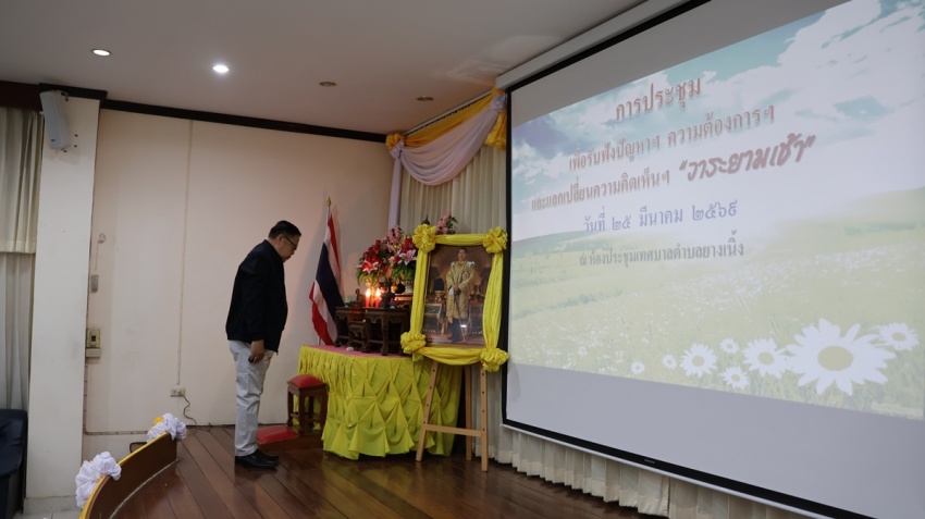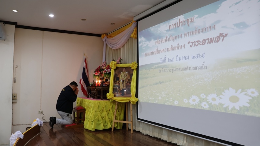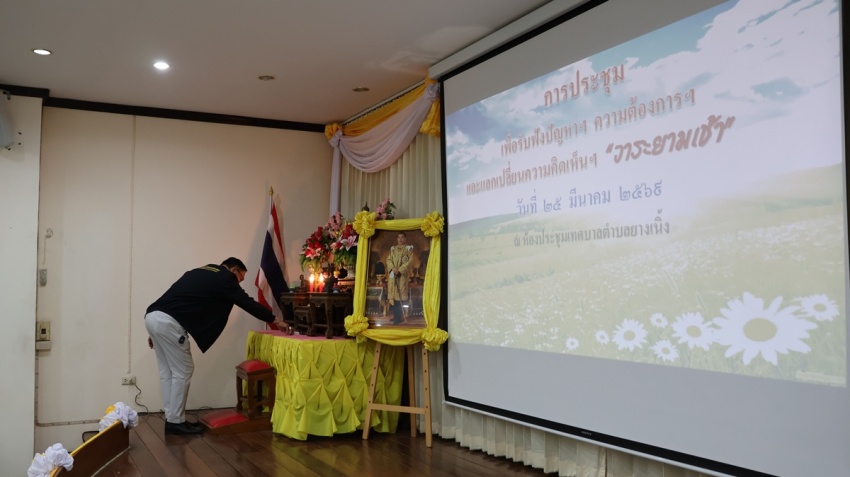 เทศบาลตำบลยางเนิ้ง ได้จัดการประชุม เพื่อรับฟังปัญหาฯลฯ ความต้องการฯลฯ และแลกเปลื่ยนความคิดเห็นฯลฯ #วาระยามเช้า ประจำเดือน มีนาคม พ.ศ. 2569 โดยนายโชติอนันต์ เเก้วกาวิล นายกเทศมนตรีตำบลยางเนิ้ง พร้อมคณะผู้บริหาร สมาชิกสภาเทศบาลฯ ปลัดเทศบาล ผู้อำนวยการกองทุกกอง หัวหน้าสำนักปลัด ผู้ทรงคุณวุฒิฯ หัวหน้าส่วนราชการ พนักงานเทศบาล กำนัน-ผู้ใหญ่บ้าน ผู้นำชุมชน และคณะกรรมการหมู่บ้าน เข้าร่วมประชุม ก่อนเริ่มการประชุม ผู้เข้าร่วมประชุมร่วมยืนสงบนิ่งถวายความอาลัย น้อมรำลึกในพระมหากรุณาธิคุณ สมเด็จพระนางเจ้าสิริกิติ์ พระบรมราชินีนาถ พระบรมราชชนนีพันปีหลวง เป็นเวลา 1 นาที และไหว้พระสวดมนต์ ก่อนเริ่มการประชุมฯ ณ ห้องประชุมเทศบาลตำบลยางเนิ้ง