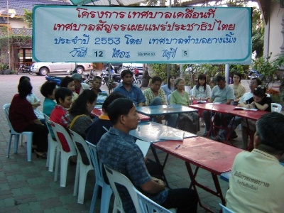 เทศบาลตำบลยางเนิ้ง ได้จัดโครงการ \"การประชุมเพื่อรับทราบปัญหาความต้องการของหมู่บ้าน ตามโครงการเทศบาลเคลื่อนที่ เทศบาลสัญจรเผยแพร่ประชาธิปไตย ประจำปี 2553\" เพื่อเป็นการประชาสัมพันธ์กิจกรรมการดำเนินงานโครงการต่างๆของเทศบาลตำบลยางเนิ้งในรูปแบบของการสัญจรไปตามหมู่บ้านต่างๆ ตลอดจนรับทราบถึงปัญหาความต้องการของประชาชนได้อย่างรวดเร็ว เป็นระบบ และมีประสิทธิภาพ เมื่อ วันศุกร์ที่ 12 มีนาคม 2553 ที่ผ่านมา หมู่ที่ 5 ณ บริเวณ วัดศรีโพธิ์ธาราม โดยมีคณะผู้บริหาร นำโดย นายมนูญ บูรณพัฒนา นายกเทศมนตรีตำบลยางเนิ้ง สมาชิกสภาเทศบาล และพนักงาน พี่น้องประชาชน เข้าร่วมประชุม และรับประทานอาหารเย็นร่วมกัน ทั้งนี้จึงขอเชิญชวนพี่น้องประชาชนที่สนใจ เข้าร่วมประชุมตาม วัน เวลา และสถานที่ดังนี้ต่อไป ทั้งนี้ถ้ามีการเปลี่ยนแปลง วัน เวลา และสถานที่ การประชุม เทศบาลจะแจ้งให้ทราบอีกครั้ง ***** วัน เวลา และสถานที่ การประชุม ***** วันที่ 18 มกราคม 2553 เวลา 17.00 น. ต.ยางเนิ้ง หมู่ 1 ณ วัดกู่เสือ วันที่ 5 กุมภาพันธ์ 2553 เวลา 17.00 น. ต.ยางเนิ้ง หมู่ 2 ณ วัดเวฬุวัน วันที่ 12 กุมภาพันธ์ 2553 เวลา 17.00 น. ต.ยางเนิ้ง หมู่ 3 ณ วัดแสนหลวง วันที่ 26 กุมภาพันธ์ 2553 เวลา 17.00 น. ต.ยางเนิ้ง หมู่ 4 ณ บ้านกำนันวิโรจน์ วันที่ 12 มีนาคม 2553 เวลา 17.00 น. ต.ยางเนิ้ง หมู่ 5 ณ วัดศรีโพธิ์ธาราม วันที่ 19 มีนาคม 2553 เวลา 17.00 น. ต.ยางเนิ้ง หมู่ 6 ณ บ้านพ่อหลวงหมู่ 6 วันที่ 9 เมษายน 2553 เวลา 17.00 น. ต.ยางเนิ้ง หมู่ 7 ณ ศาลากลางหมู่บ้าน ม.7 ข้างทางรถไฟ วันที่ 23 เมษายน 2553 เวลา 17.00 น. ต.สารภี หมู่ 1 ณ ศาลากลางหมู่บ้าน ม.1 ต.สารภี .....โดยสำนักปลัด.....