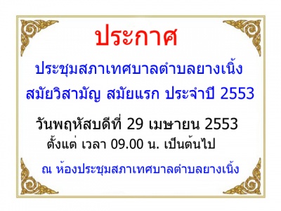 ประชุมสภาเทศบาลตำบลยางเนิ้ง สมัยวิสามัญ สมัยแรก ประจำปี 2553