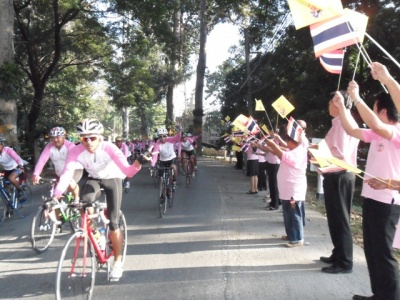 เทศบาลตำบลยางเนิ้งให้การต้อนรับขบวนจักรยาน"บอกรักพ่อที่ภูพิงค์"