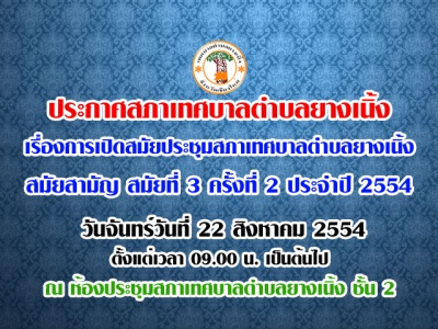 ประกาศประชุมสภาเทศบาลตำบลยางเนิ้ง สมัยสามัญ สมัยที่ 3 ครั้งที่ 2 ประจำปี 2554