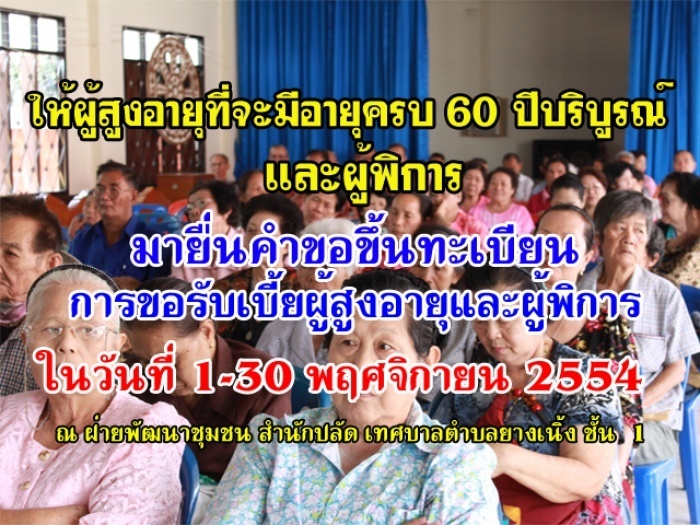 การลงทะเบียนขอรับเบี้ยยังชีพผู้สูงอายุและผู้พิการ (รายใหม่) ประจำปีงบประมาณ พ.ศ. 2556