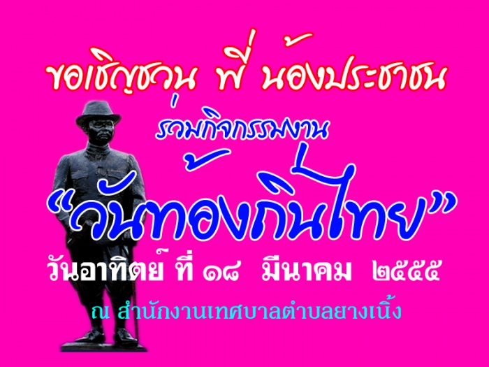 | 1 | รายละเอียดกิจกรรมในงานวันท้องถิ่นไทย | 45 KB. | 243 |