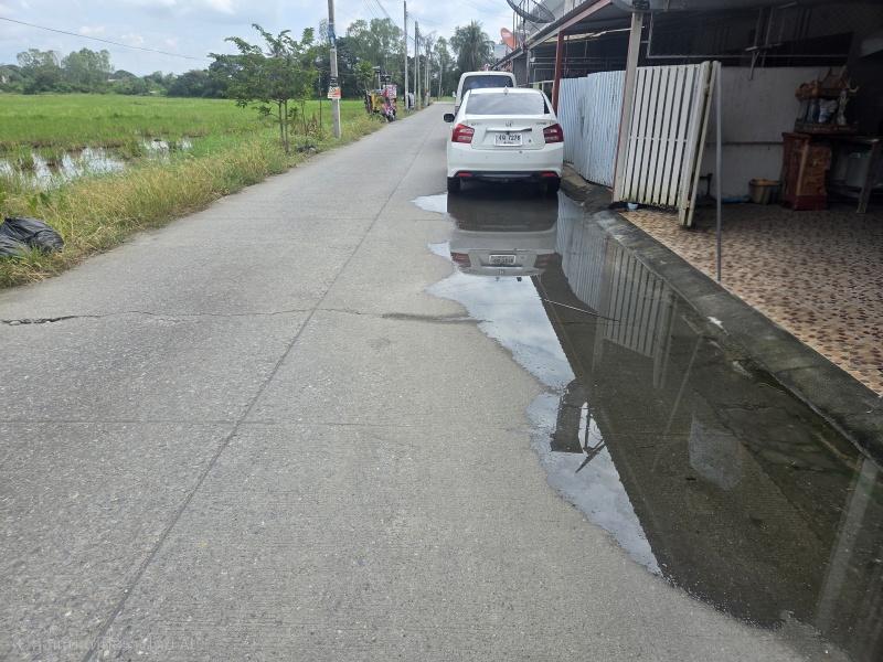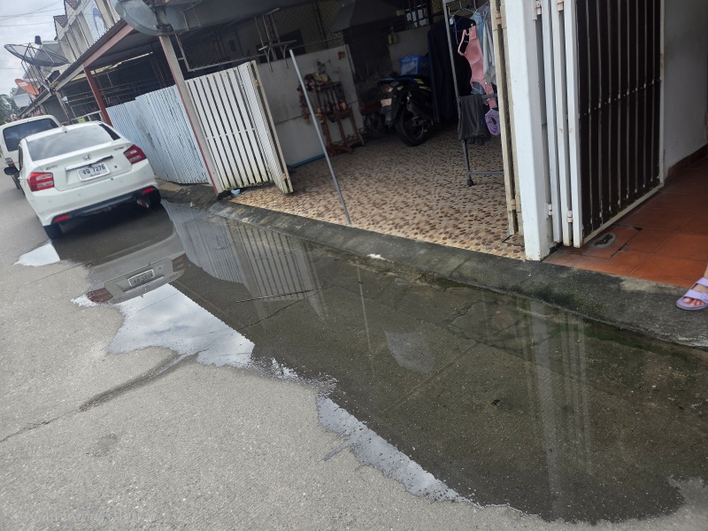 ท่อน้ำริมถนนหน้าบ้านตัน น้ำเจิ่งนองไม่ระบาย ลำบากต่อการใช้ชีวิต และรบกวนเพื่อนบ้าน